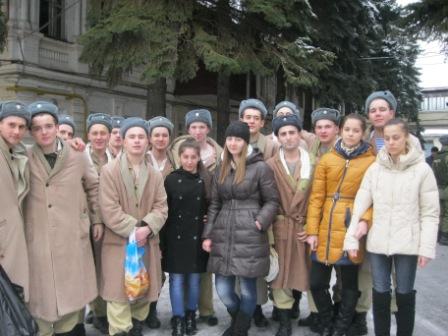 Учащиеся 10-ых классов нашей школы в этот день поздравили военнослужащих, находящихся в военном госпитале. В посылки разложили всё самое необходимое, что нужно солдату в этих условиях: начиная с чая, кофе, сладостей. Приятно было слышать слова благодарности в адрес всех учащихся школы.